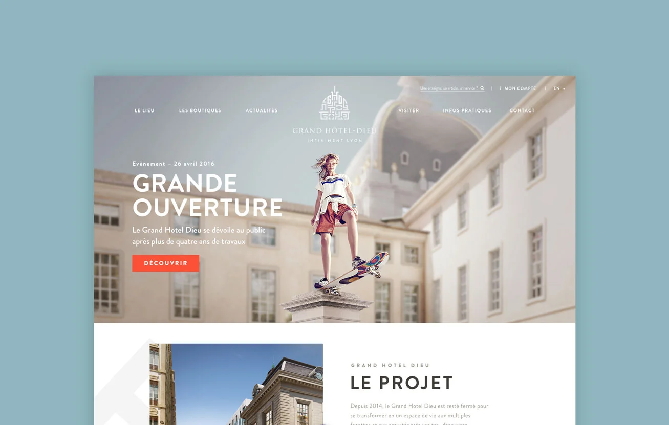 Designing the website of the new Grand Hôtel Dieu was a travel back in time with a switch of modernity.
